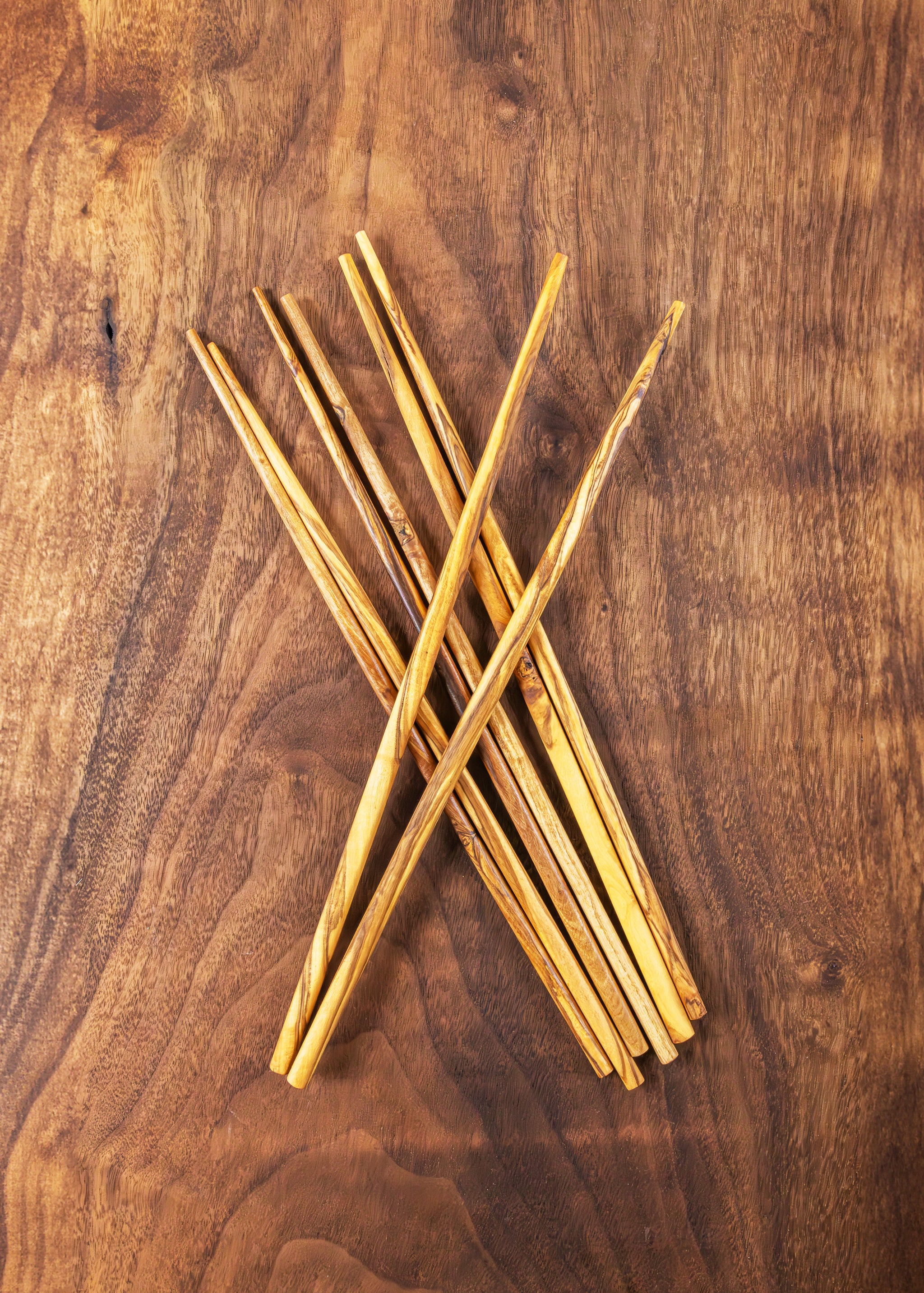 These 12″ olive wood chopsticks are hand-carved and smooth to the touch, perfect for sushi, ramen, or everyday meals. Each pair showcases unique wood grain, making every set one of a kind. Durable, reusable, and beautiful, they’re a simple way to elevate your table.